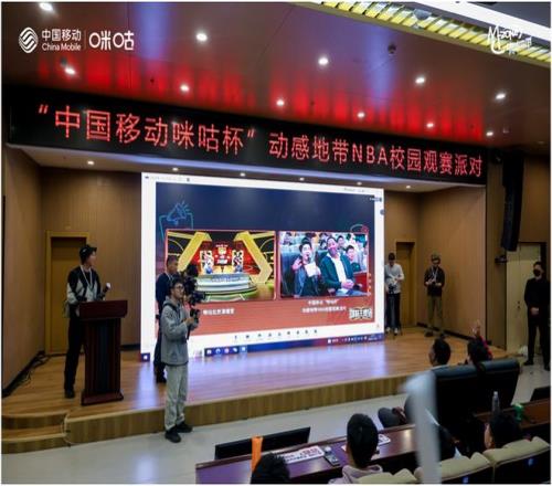 作为下午联赛冠军赛的“预热引擎”,观赛派对的互动环节亮点十足。NBA球赛与动感地带校园卡趣味问答交替上演,学子们踊跃举手、快速抢答,现场欢呼声此起彼伏,热度持续攀升。答对者纷纷收获NBA吨吨杯、定制公仔等周边好礼,更有幸运学子更将NBA总冠军T恤收入囊中,在趣味互动中满载惊喜与欢乐。