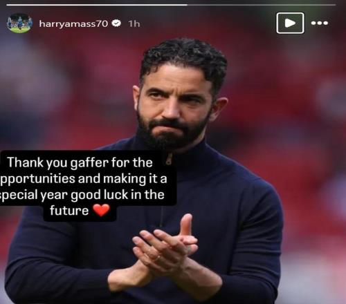 在阿莫林下课后,曼联外租小将哈里-阿马斯在社交媒体发文告别。