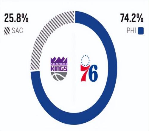 这是两队本赛季的第一次交锋,在最近五次交手中,76人取得了3胜2负,占据一定心理优势。赛前,美媒ESPN对本场比赛进行了胜率预测,国王胜率仅有25.8% ,劣势明显,76人队胜率则高达74.2% 。