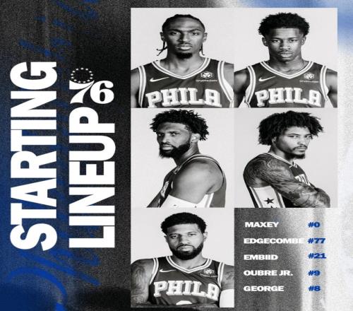 首发阵容方面,76人队这边,三巨头均可出战,排出的最新首发五人组为:乌布雷、保罗-乔治、马克西、恩比德、VJ-埃奇库姆;国王队这边,威少伤缺,拉文替补出战,首发阵容则为:施罗德、克利福德、德罗赞、阿丘瓦、萨博尼斯。