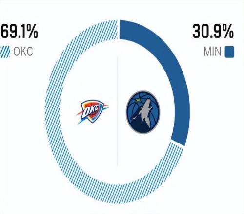 这是两队本赛季的第三次交锋,此前两次交手,雷霆与森林狼各胜一场战至平手。赛前,美媒ESPN对本场比赛进行了胜率预测,雷霆队胜率依旧高达69.1%,优势非常明显,森林狼胜率则仅有30.9%,还是不被看好。