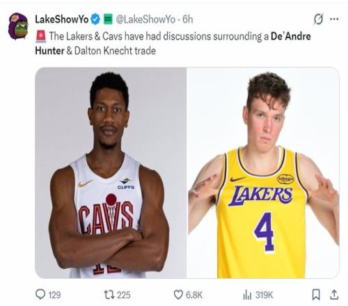 在Brett Siegel的报道中,湖人队有意在交易截止日得到的球员还不止亨特一人,篮网队的海史密斯、夏普也是意中人。
