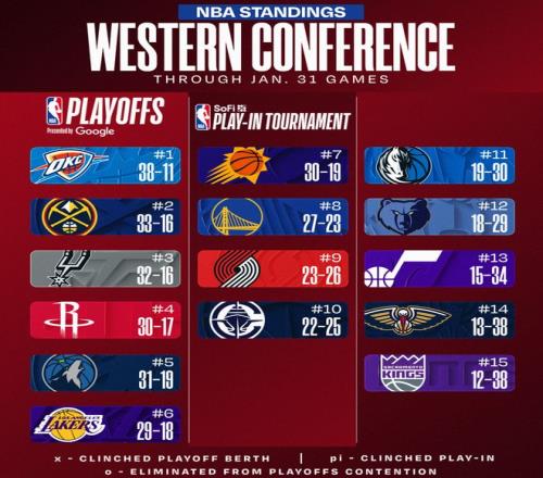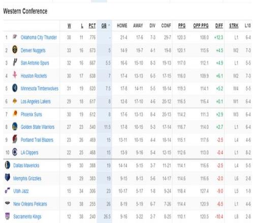 北京时间2月1日,NBA西部的排名又有了一些细微的变化,丹佛掘金躺着升上了西部第二,因为马刺在客场爆冷不敌黄蜂,而2月2日马刺、掘金都有比赛两队的西部第二的竞争还将继续下去。森林狼则已经豪取四连胜稳稳压制湖人、太阳。