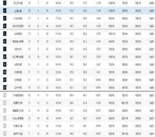 CBA常规赛第22轮的较量已经全部打完,在今晚结束的最后六场对决中,又出现了两场爆冷好戏,宁波男篮主场94-81击败广东男篮,重新打乱了联赛的格局,北京首钢也是主场87-89惜败青岛男篮,2连败陷入绝境,两大争冠热门一夜同时输球,季后赛形势也是彻底大变天了。其他场次方面,上海男篮主场114-80大胜南京同曦,目前战绩紧追浙江广厦,双方只有1个胜场的差距;新疆男篮大胜四川男篮,战绩排名升至联赛第十四名,与第十二名的辽宁男篮只有1个胜场的差距;深圳男篮客场90-71大胜江苏男篮,重新杀进联赛前四;北控男篮也是客场险胜福建男篮,排名升至联赛第十一名。从积分榜排名来看,第十二名的竞争非常激烈,辽宁、广东、新疆、福建、吉林、天津、同曦这七支球队的差距都不大,都具备争夺季后赛的资格。