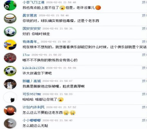 好嘛,输了也是赢了,果然是赢麻了!难怪看到许利民如此说法,球迷们都忍不住了,“我真是佩服他这张破嘴,脸皮是真厚啊”、“我也有点脸上挂不住了,但是,老许没事儿”、“现在根本不想别的,就想看看俱乐部能忍到什么时候,这个俱乐部就是个笑话”。